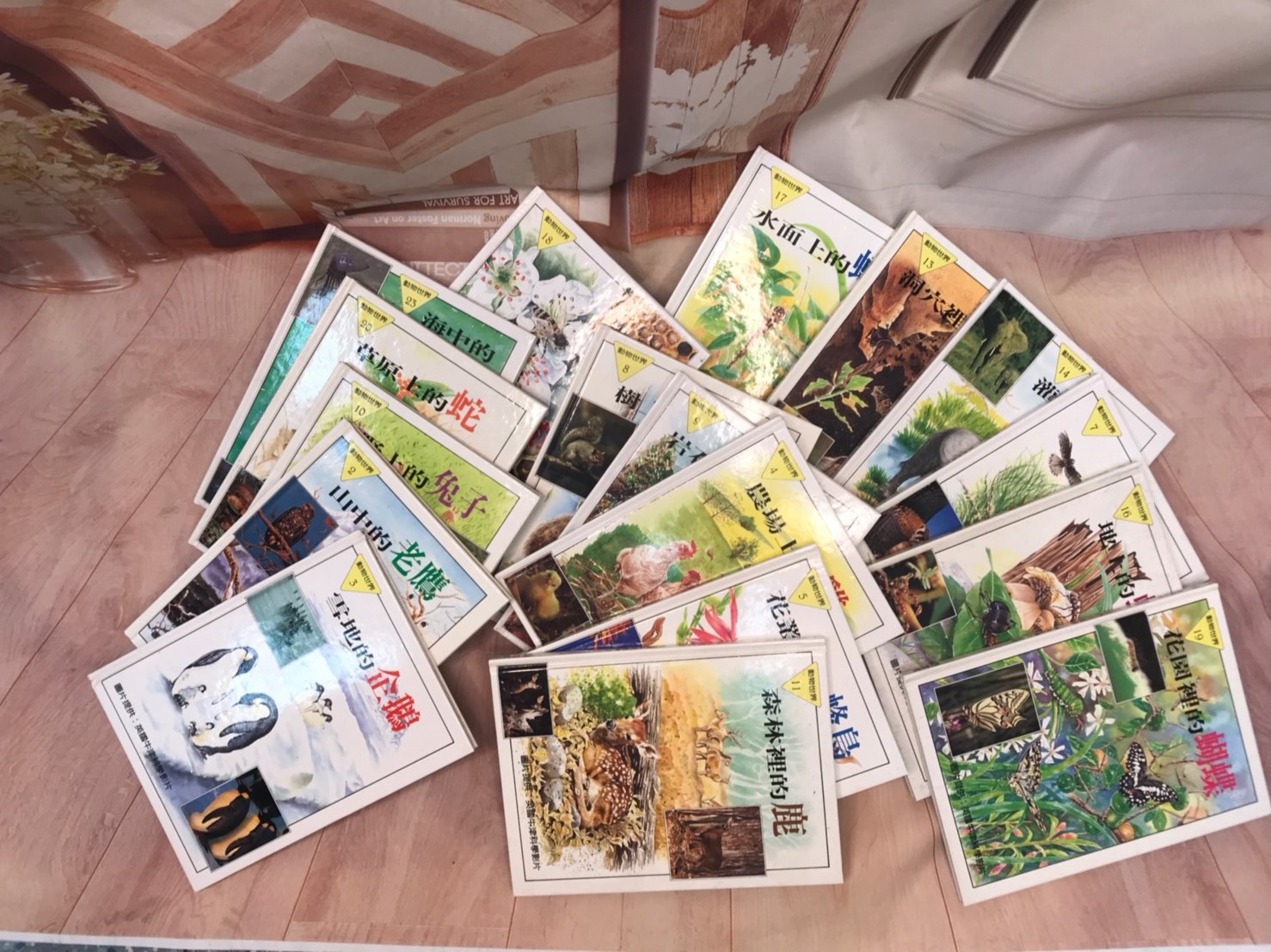 ◆ 書名:湖中天鵝/山中老鷹/雪地企鵝/農場上的雞/花叢裡的蜂鳥/樹林裡的貓頭鷹/城裡的隼/樹上的松鼠