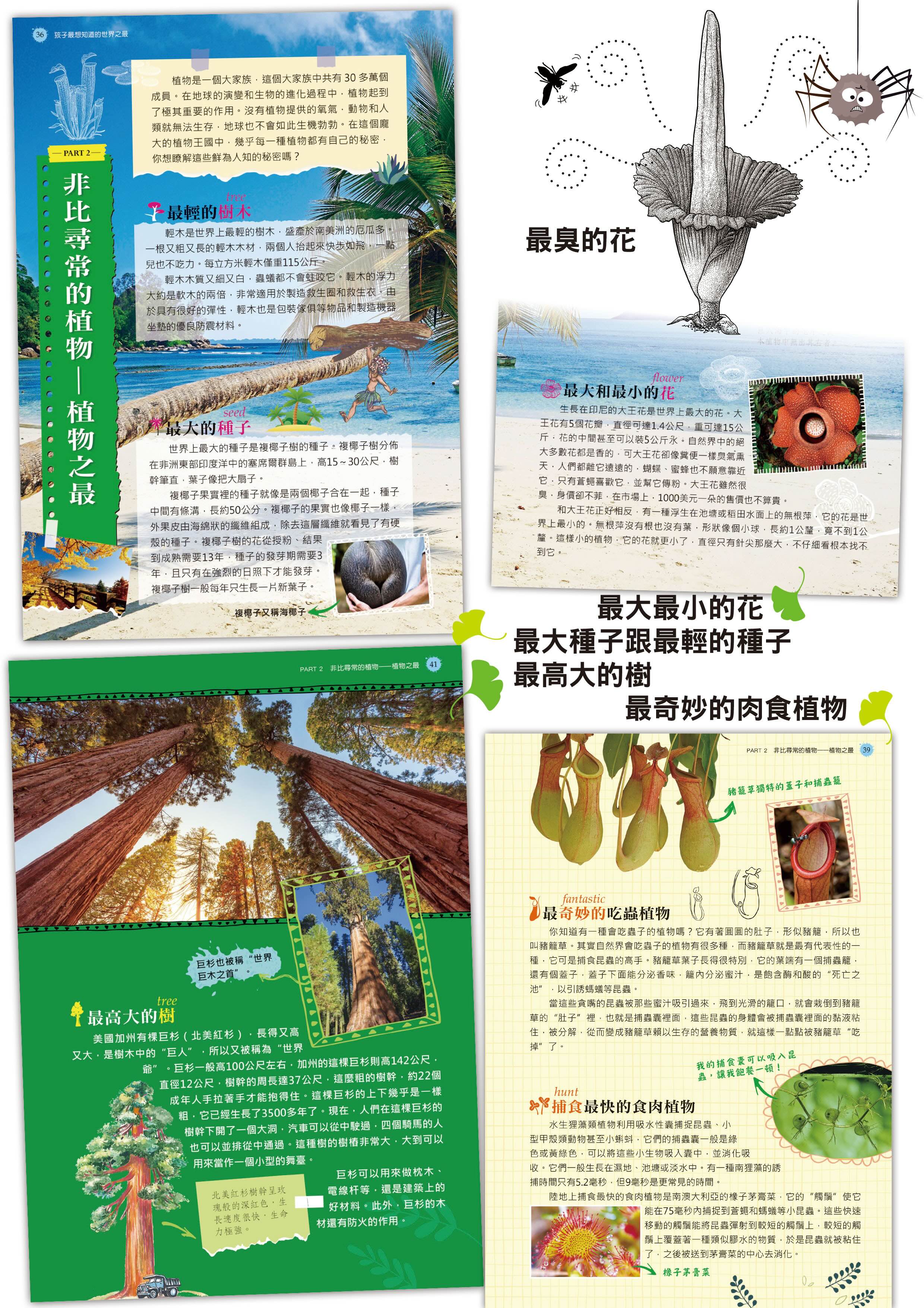- 植物:最大種子複椰子、最輕木材輕木、吃蟲植物豬籠草/狸藻
