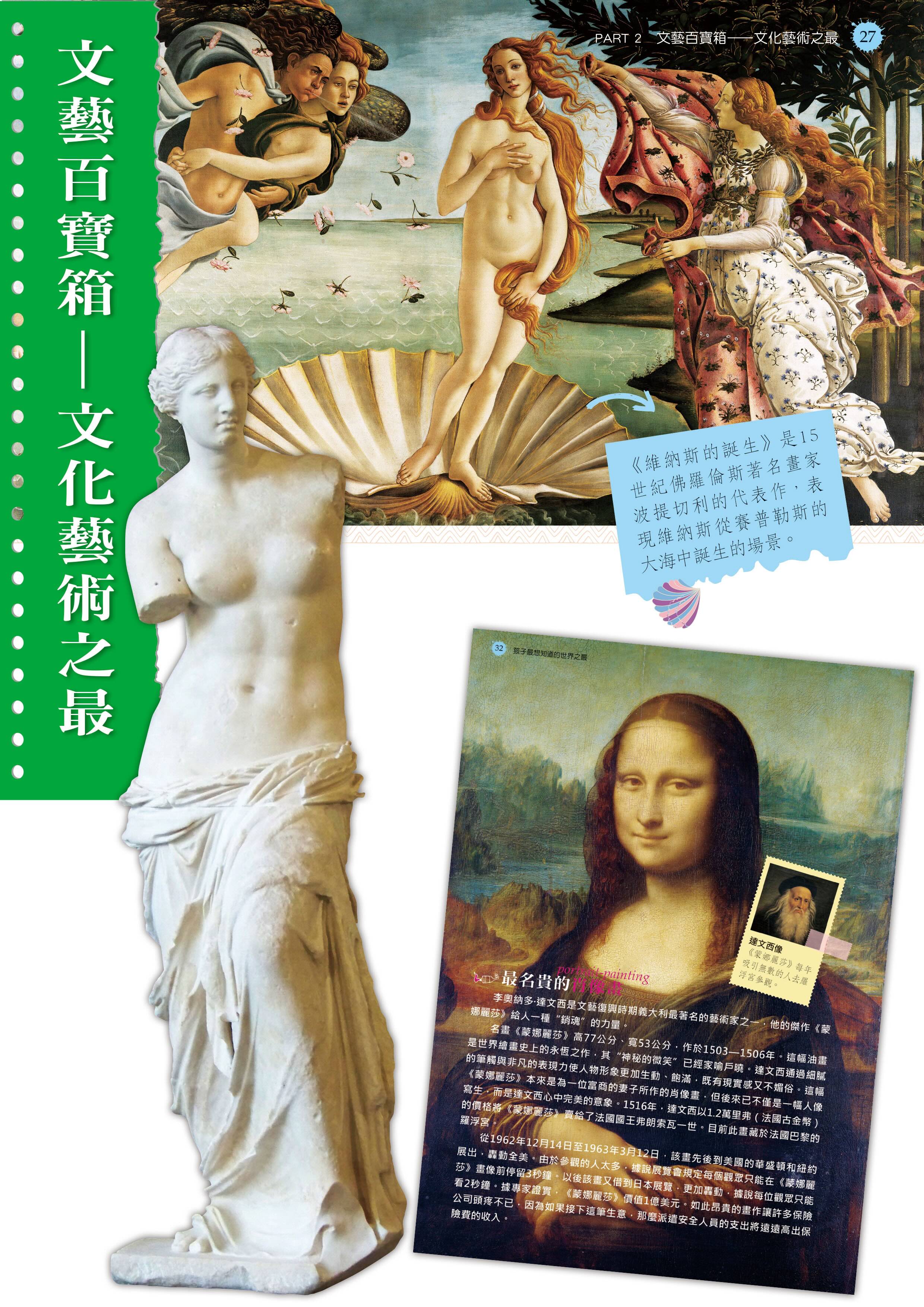 - 文化與建築:羅浮宮《蒙娜麗莎》、摩天建築
