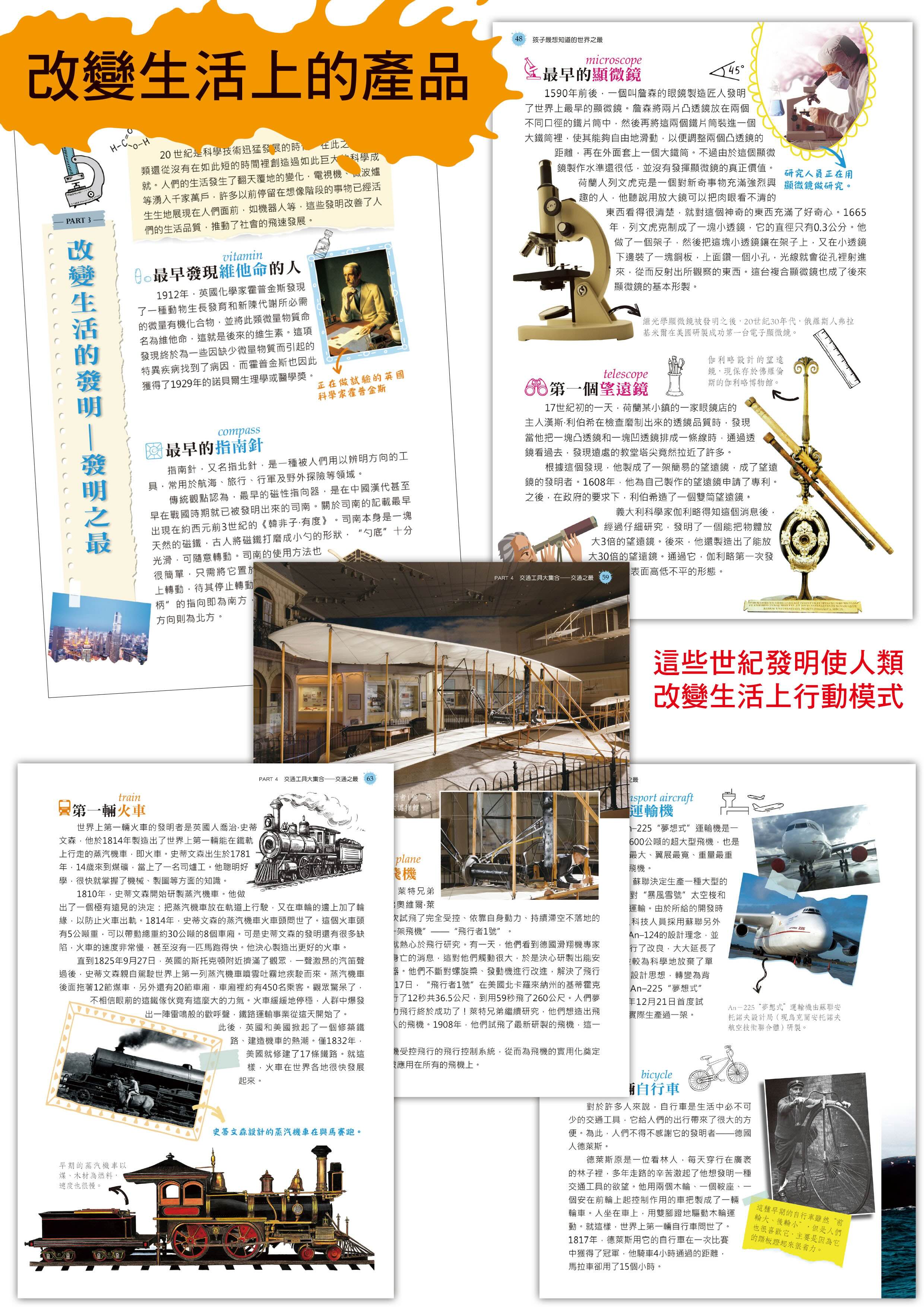 - 發明與交通:指南針、顯微鏡、望遠鏡、蒸汽火車、飛機發展