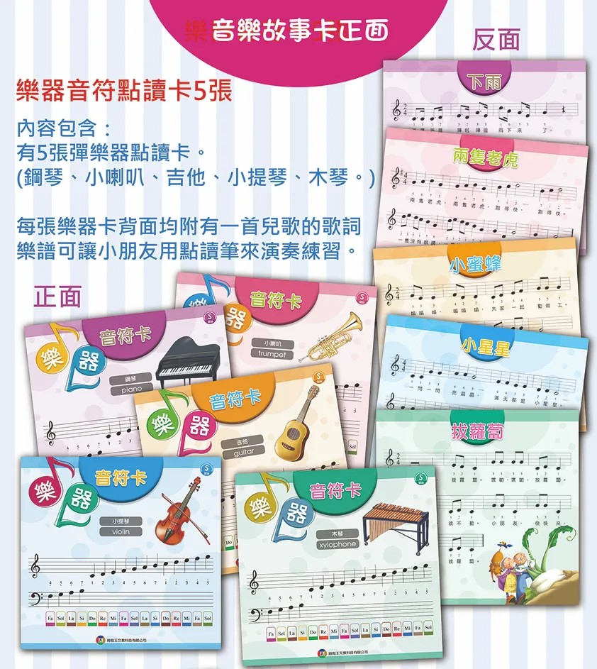 內含 5 張樂器音符卡(鋼琴、吉他、小提琴、小喇叭、木琴),