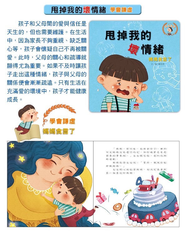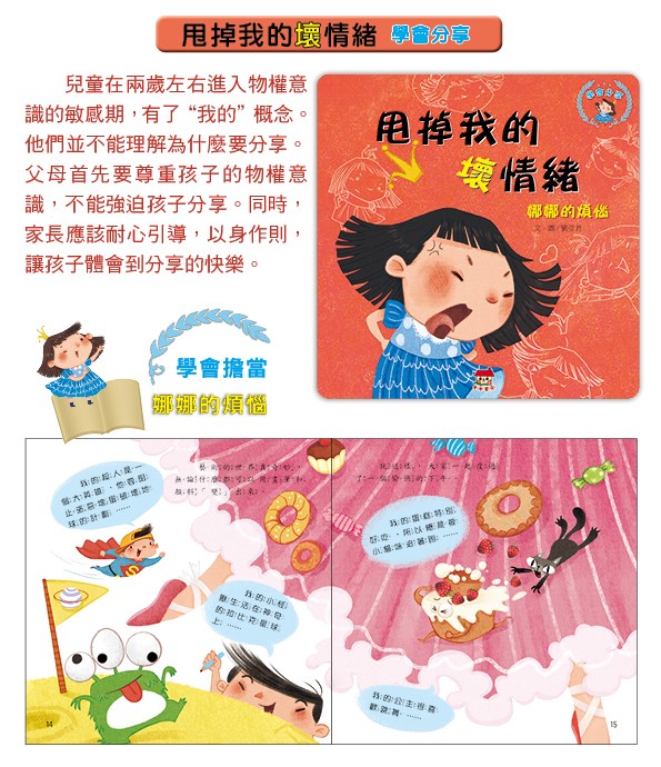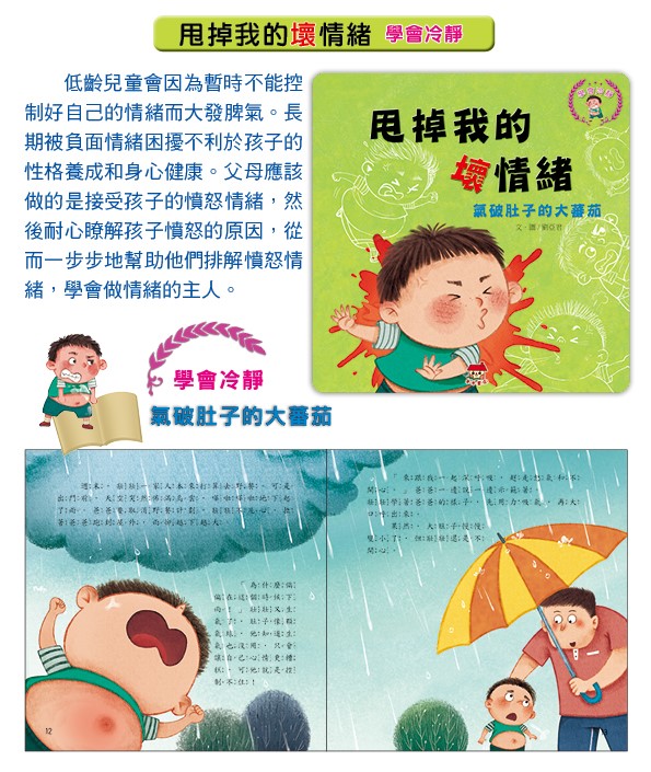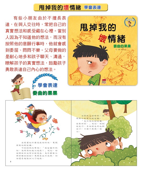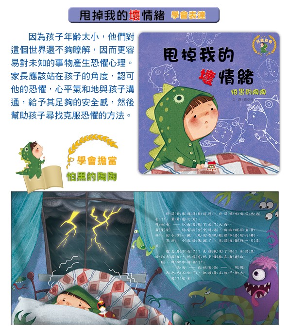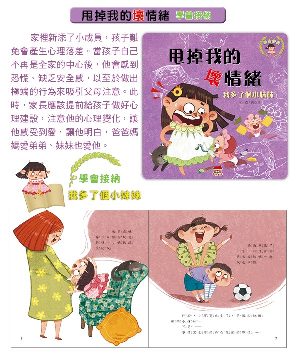 每冊一個生活場景,如「怕黑的陶陶」「委曲的果果」「我多了個小妹妹」,
